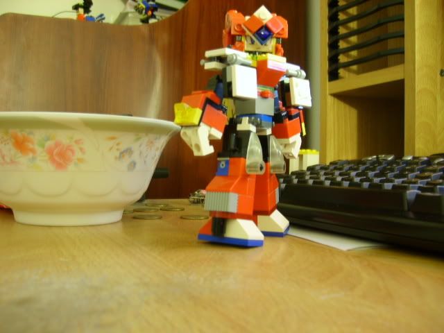 Otanko's nose seems a bit long... I HAVE AN IDEA!!! Take pics of all the separate pieces for the things like the gundelsol and I bet I can make the same thing! or because of my vast room filled to the point of the window full of lego I could possible make an few improvements! Sorry, my rant button was on and I'm in a mood. I feel like showing something up. |