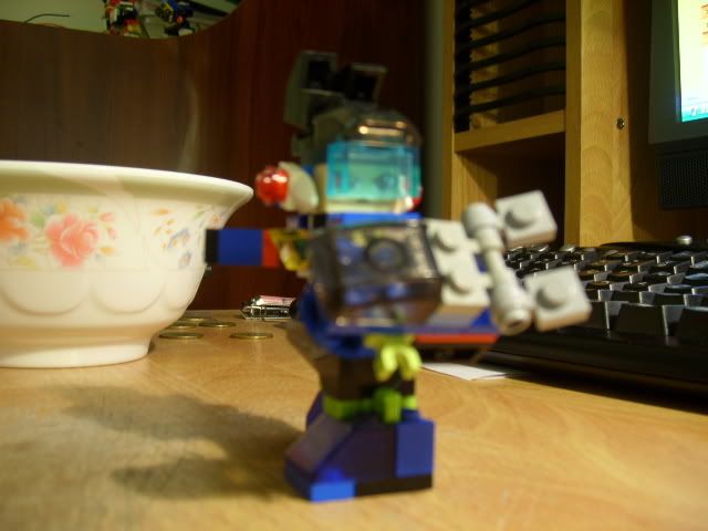 I like mine better though... It's more articulate. Well my Lego Zero is.....he can bend at the knees and elbows, turn his head, movable fingures, turable waist, and the hair is the only thing not made of lego but paper...but that's a different issue... -_- |