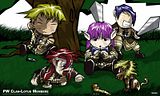 As requested by Distrust...not much details put in the background. Hand Drawn using a mouse (no pencils involve) gets tiring after awhile. Posted Image Full Size can be seen on my Deviant. kepner.deviantart.com Whos who? Yellow Hair - Distrust Red Hair - CosmoSlayer Blue Hair - KepneR (me) Violet Hair - Wynn(suppose to be him, base on his avatar XD) Baby Lion - Suppose to be my pet Hope you like it. Forum banner Click the image to see the full size. Posted Image B) B) B)
