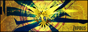 What I don't like about is the background patterns which really take away from Zapdos itself. Cool, you chose to go with a psychadelic green'ish color that really makes the sig awesome but the patterns are god darn awful. 8/10 |